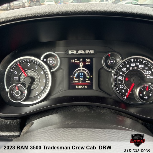 Introducing the ultimate workhorse - a 2023 RAM 3500 Tradesman Crew Cab DRW. With only 53,254 miles on the clock, this powerful pickup is ready to tackle any job you throw its way. From its rugged exterior to its luxurious leather seating and advanced safety features, this truck has it all. Whether you're hauling heavy loads or cruising down the highway, the 6. 4L V8 engine will provide you with all the power you need. Plus, with amenities like keyless entry, satellite radio, and alloy wheels, every drive will be a comfortable and enjoyable experience. Don't miss out on your chance to own this top-of-the-line truck. Visit our website today to learn more about this incredible vehicle and schedule a test drive before it's gone! Drive away in style with the RAM 3500 Tradesman Crew Cab DRW.