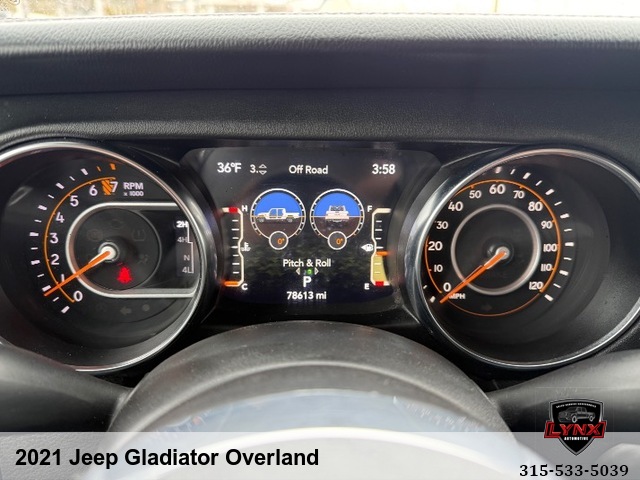 Introducing the ultimate adventure machine - the 2021 Jeep Gladiator Overland! This rugged and versatile pickup truck is ready to take on any terrain with its powerful 3. 6L V6 engine and 4x4 capabilities. With only 78,606 miles on the odometer, this beast is just getting started. Loaded with features like leather seating, navigation system, sunroof, and more, you'll be riding in style and comfort wherever your next journey takes you. Whether you're hitting the trails or cruising through city streets, this Jeep Gladiator has got you covered. Don't miss out on this opportunity to own a top-of-the-line truck that's built for adventure. Get behind the wheel of the 2021 Jeep Gladiator Overland today and experience true freedom on four wheels. Drive into your next chapter of exploration with confidence in a vehicle that can handle anything thrown its way.