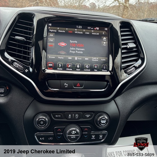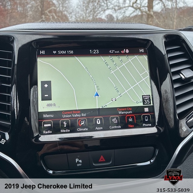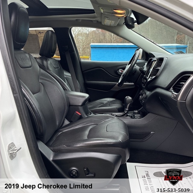 Experience the thrill of the open road in style with this 2019 Jeep Cherokee Limited SUV. This sleek and powerful vehicle is equipped with all the features you need for a comfortable and safe ride, from heated seats to a navigation system. Whether you're cruising down city streets or tackling off-road adventures, this Jeep Cherokee can handle it all with its 3. 2L V6 engine and 9-speed transmission. With its luxurious leather seating and sun/moon roof, you'll feel like royalty every time you hit the road. Don't miss out on this incredible opportunity to own a top-of-the-line SUV - contact us today to schedule a test drive before it's gone!