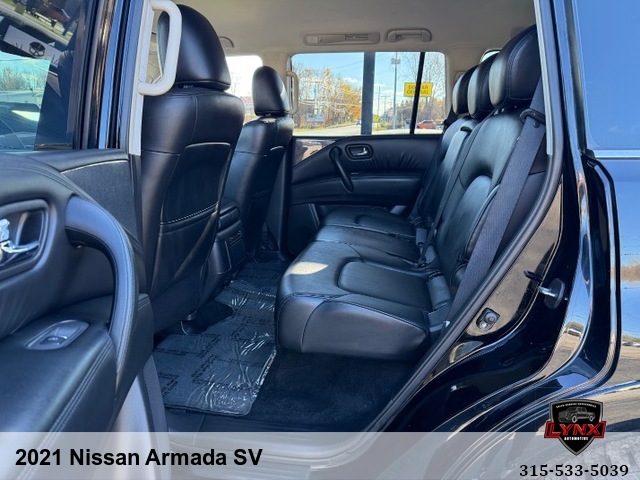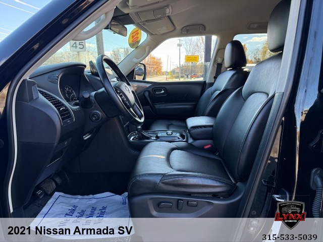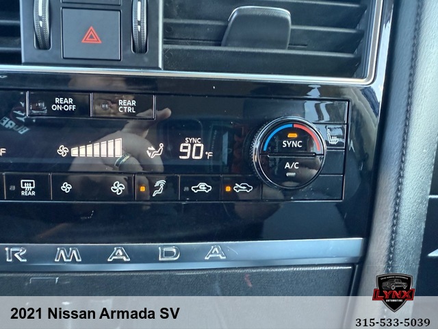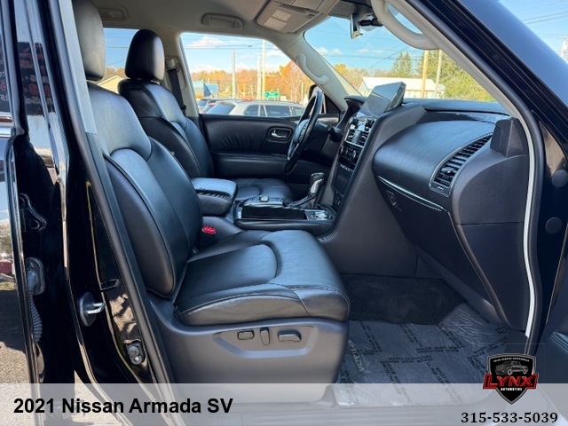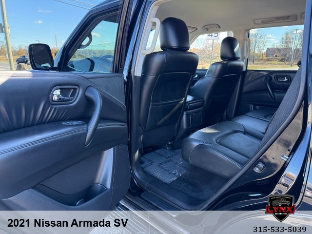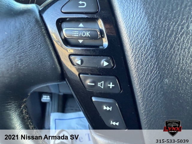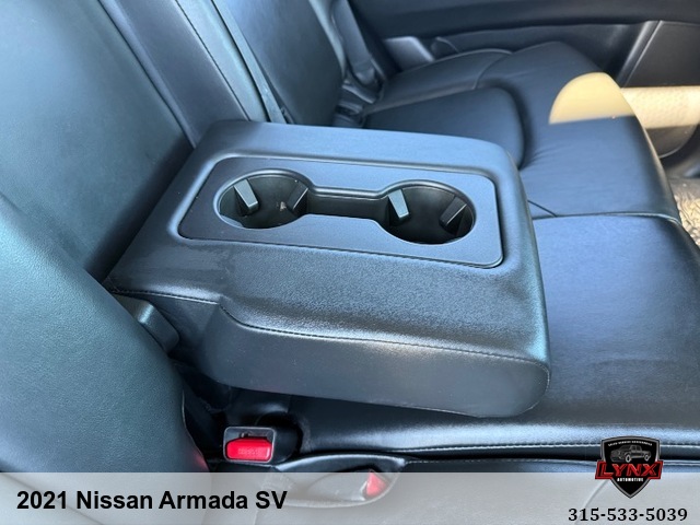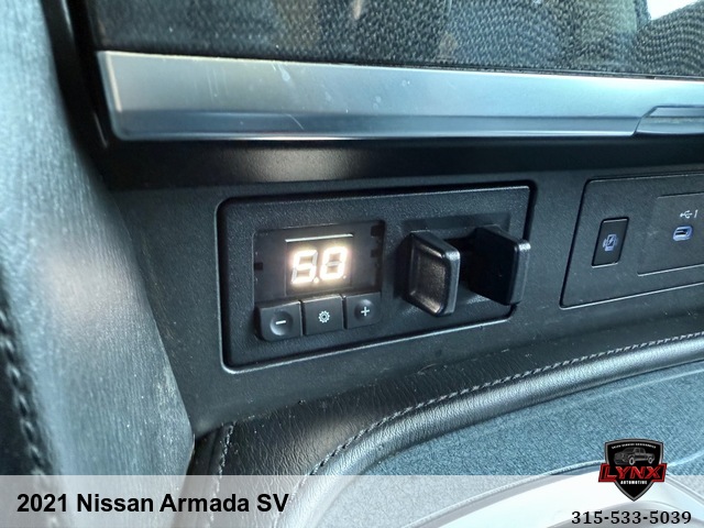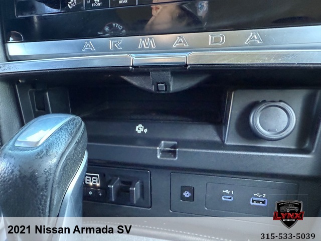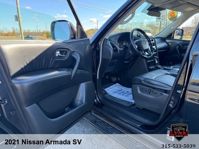 Introducing the ultimate family SUV: the 2021 Nissan Armada SV! With a powerful 5. 6L V8 engine and luxurious features like leather seating, heated seats, and a navigation system, this vehicle is sure to impress. Whether you're running errands around town or heading out on a road trip adventure, the Armada has everything you need for a comfortable and enjoyable ride. Safety is always a top priority with airbags, anti-lock brakes, and keyless entry included in this model. Plus, with amenities like satellite radio and premium sound system, you'll never want to leave your new favorite vehicle. Don't miss out on this incredible opportunity to own a top-of-the-line SUV at an unbeatable price. Visit our website today to learn more about the 2021 Nissan Armada SV and schedule your test drive before it's gone!