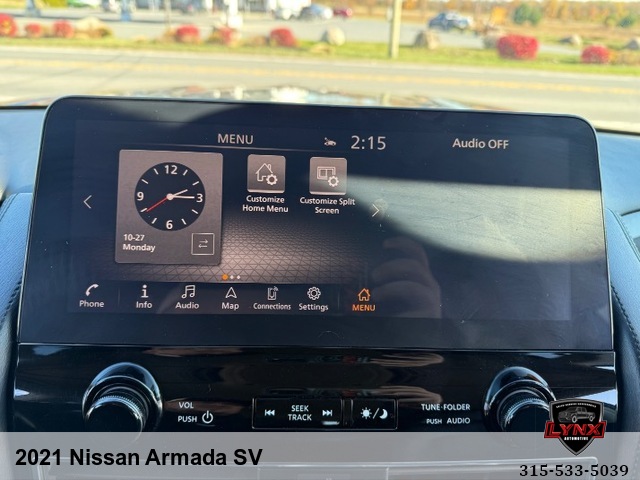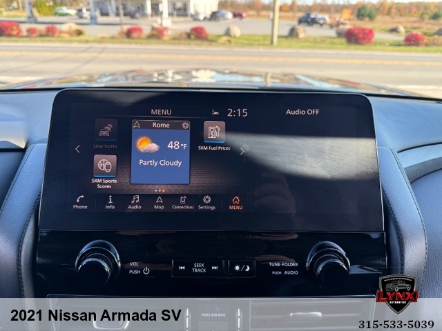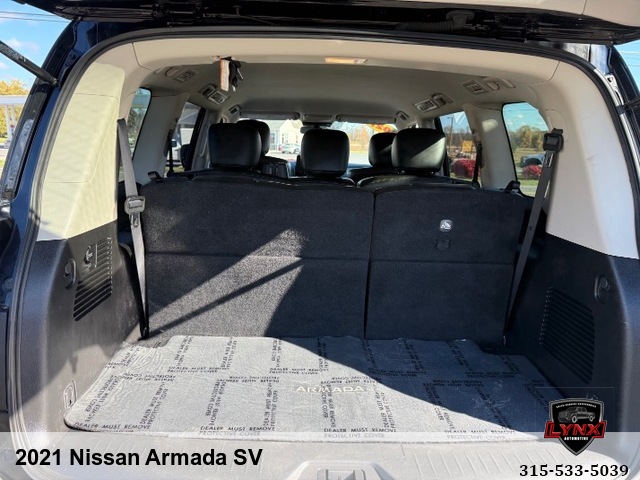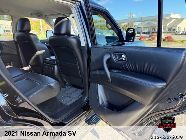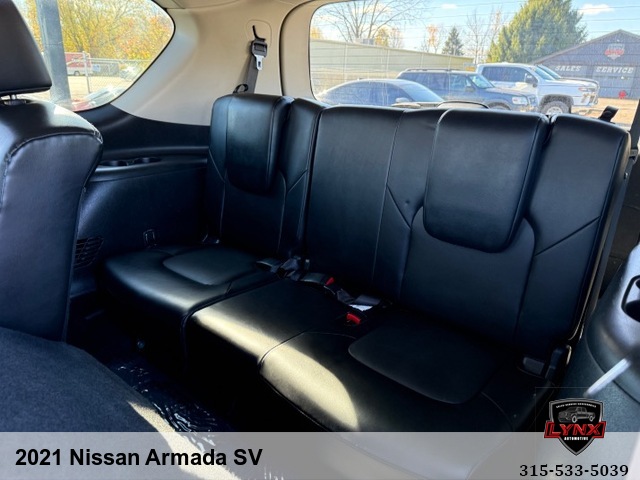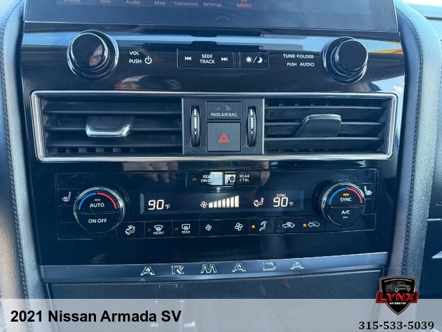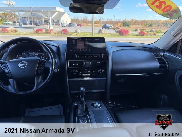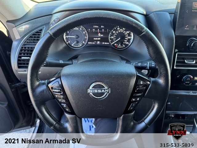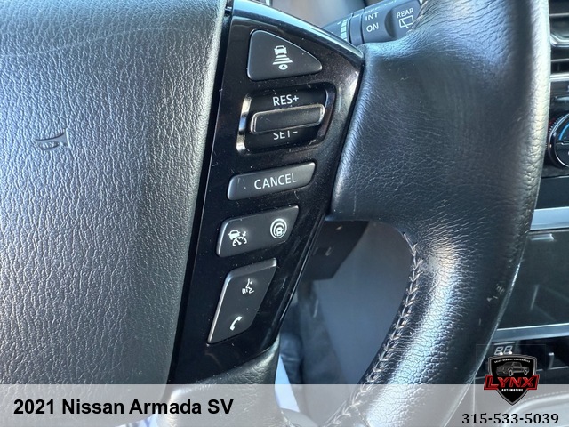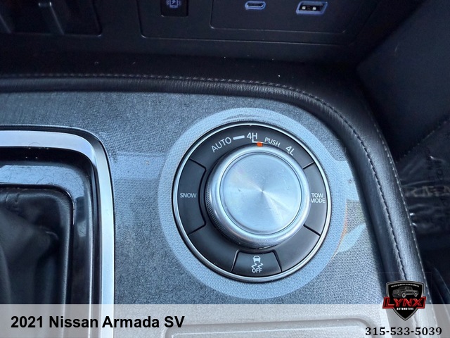 Introducing the ultimate family SUV: the 2021 Nissan Armada SV! With a powerful 5. 6L V8 engine and luxurious features like leather seating, heated seats, and a navigation system, this vehicle is sure to impress. Whether you're running errands around town or heading out on a road trip adventure, the Armada has everything you need for a comfortable and enjoyable ride. Safety is always a top priority with airbags, anti-lock brakes, and keyless entry included in this model. Plus, with amenities like satellite radio and premium sound system, you'll never want to leave your new favorite vehicle. Don't miss out on this incredible opportunity to own a top-of-the-line SUV at an unbeatable price. Visit our website today to learn more about the 2021 Nissan Armada SV and schedule your test drive before it's gone!